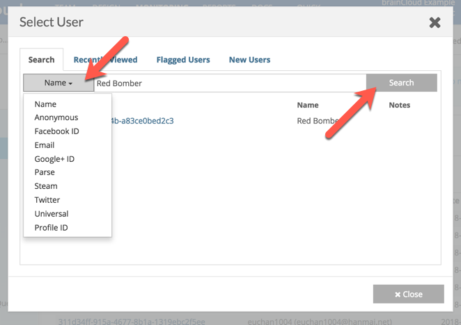 Once the Select User popup is open you have a variety of options available to find the users you're looking for. From the search tab you can perform a number of search types from the drop down to the left of the search bar (default is Name).