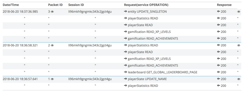 - Packet ID - The packet ID increments with each request the User makes. By clicking the eye icon to the right of the ID you can view the raw request information that was sent to the server.